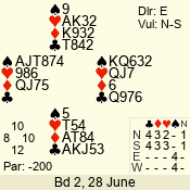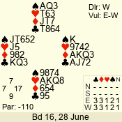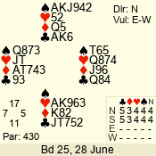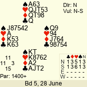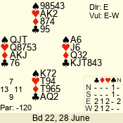 | 3 NT | S | +1 | 430 | 7 | 07 - 13 | 3 | 6 |