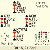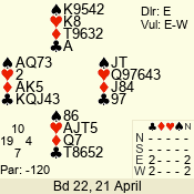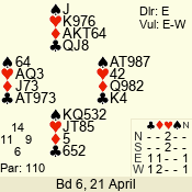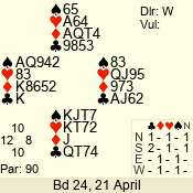| Con | Dc | Res | Score | Ld | Pairs | Rd | Tbl | | 2 N | N | +1 | 150 | 2 | 06 - 06 | 1 | 6 |
