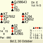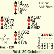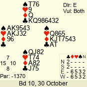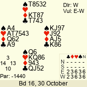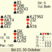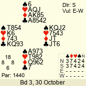 | Con | Dc | Res | Score | Ld | Pairs | Rd | Tbl | | 3 N | N | +3 | 690 | 9 | 06 - 02 | 5 | 6 |