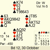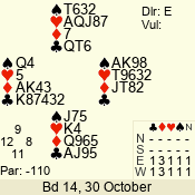 | Con | Dc | Res | Score | Ld | Pairs | Rd | Tbl | | 3 N | E | -2 | 100 | 5 | 12 - 01 | 12 | 12 |