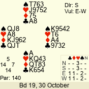 | Con | Dc | Res | Score | Ld | Pairs | Rd | Tbl | 4  | N | +3 | 510 | 2 | 08 - 06 | 3 | 8 |