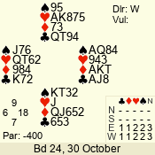 | Con | Dc | Res | Score | Ld | Pairs | Rd | Tbl | | 3 N | W | -4 | 400 | J | 07 - 01 | 7 | 7 |