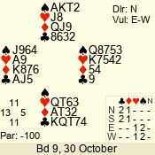| Con | Dc | Res | Score | Ld | Pairs | Rd | Tbl | | 3 N | W | -2 | 100 | T | 12 - 12 | 1 | 12 |