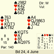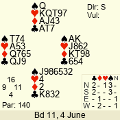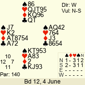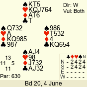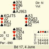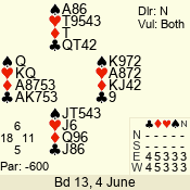 | Con | Dc | Res | Score | Ld | Pairs | Rd | Tbl | | 3 N | S | +2 | 660 | 4 | 03 - 05 | 7 | 3 |