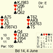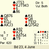 | Con | Dc | Res | Score | Ld | Pairs | Rd | Tbl | | 1 N | N | +4 | 210 | 3 | 06 - 01 | 6 | 6 |