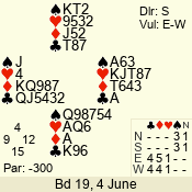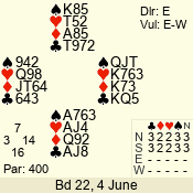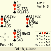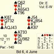 | Con | Dc | Res | Score | Ld | Pairs | Rd | Tbl | | 4 N | E | -3 | 150 | 4 | 03 - 05 | 7 | 3 |