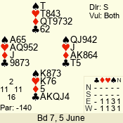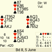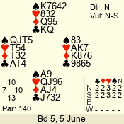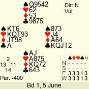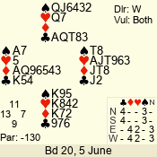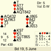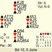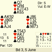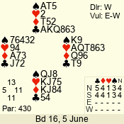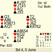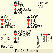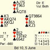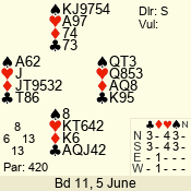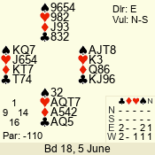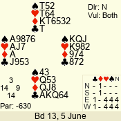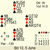 | 3 NT | W | +1 | -430 | 6 | 10 - 10 | 11 | 10 |