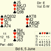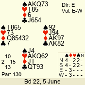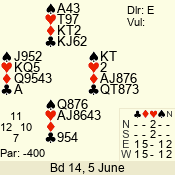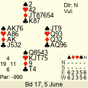 | 3 NT | E | +2 | -460 | 4 | 06 - 04 | 3 | 6 |