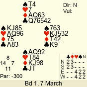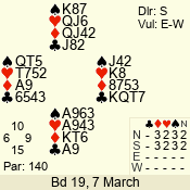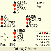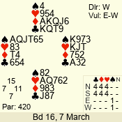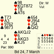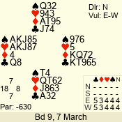| Con | Dc | Res | Score | Ld | Pairs | Rd | Tbl | | 3 N | S | +1 | 430 | T | 02 - 06 | 9 | 2 |