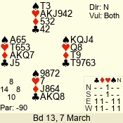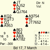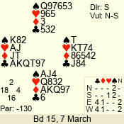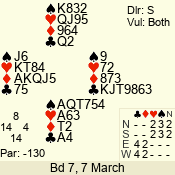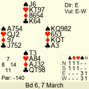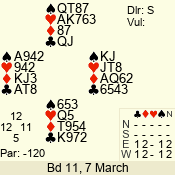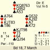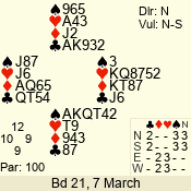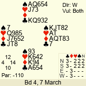 | Con | Dc | Res | Score | Ld | Pairs | Rd | Tbl | | 1 N | N | +3 | 180 | 6 | 09 - 03 | 7 | 9 |