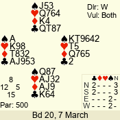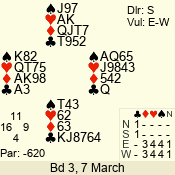 | Con | Dc | Res | Score | Ld | Pairs | Rd | Tbl | | 6 N | S | +1 | 1020 | 3 | 05 - 10 | 8 | 5 |