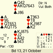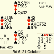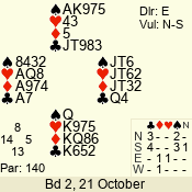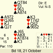 | Con | Dc | Res | Score | Ld | Pairs | Rd | Tbl | | 1 N | S | +3 | 180 | A | 04 - 07 | 7 | 4 |