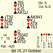 | Con | Dc | Res | Score | Ld | Pairs | Rd | Tbl | 4  | S | = | 420 | A | 01 - 01 | 1 | 1 |