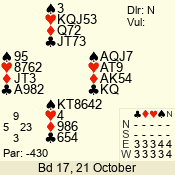 | Con | Dc | Res | Score | Ld | Pairs | Rd | Tbl | | 3 N | S | +1 | 630 | 4 | 03 - 05 | 8 | 3 |