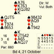 | Con | Dc | Res | Score | Ld | Pairs | Rd | Tbl | 4  | S | +1 | 650 | 5 | 03 - 07 | 11 | 3 |
