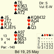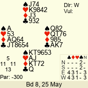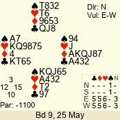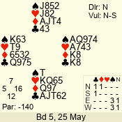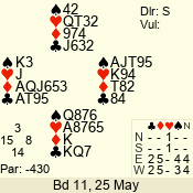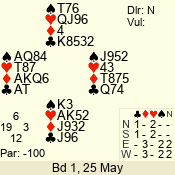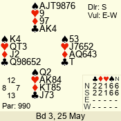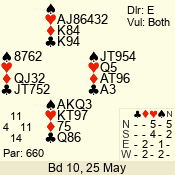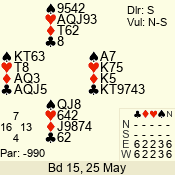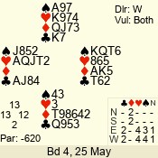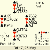 | Con | Dc | Res | Score | Ld | Pairs | Rd | Tbl | | 3 N | N | +1 | 630 | 7 | 06 - 06 | 18 | 6 |