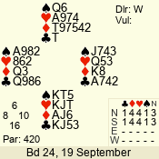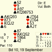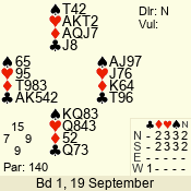 | Con | Dc | Res | Score | Ld | Pairs | Rd | Tbl | | 1 N | N | +2 | 150 | 4 | 06 - 10 | 7 | 6 |