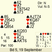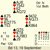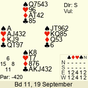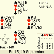 | Con | Dc | Res | Score | Ld | Pairs | Rd | Tbl | | 1 N | S | +2 | 150 | 8 | 05 - 05 | 11 | 5 |