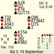 | Con | Dc | Res | Score | Ld | Pairs | Rd | Tbl | | 3 N | E | -2 | 200 | 3 | 03 - 06 | 8 | 3 |
