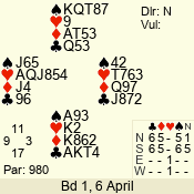 | Con | Dc | Res | Score | Ld | Pairs | Rd | Tbl | 4  | S | = | 420 | T | 03 - 06 | 7 | 3 |