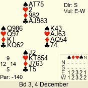 | Con | Dc | Res | Score | Ld | Pairs | Rd | Tbl | | 3 N | E | -3 | 150 | 2 | 06 - 02 | 5 | 4 |