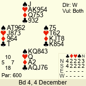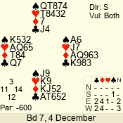 | Con | Dc | Res | Score | Ld | Pairs | Rd | Tbl | | 3 N | W | -6 | 600 | 8 | 10 - 06 | 8 | 3 |
