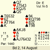 | Con | Dc | Res | Score | Ld | Pairs | Rd | Tbl | | 2 N | E | -2 | 200 | A | 14 - 11 | 2 | 9 |