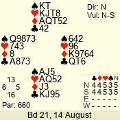 | Con | Dc | Res | Score | Ld | Pairs | Rd | Tbl | | 5 N | S | = | 660 | 7 | 16 - 04 | 6 | 6 |