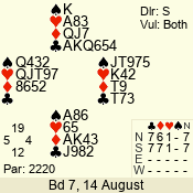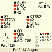 | Con | Dc | Res | Score | Ld | Pairs | Rd | Tbl | | 3 N | S | +3 | 690 | 6 | 16 - 07 | 9 | 6 |