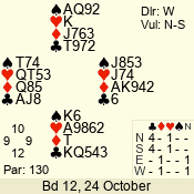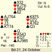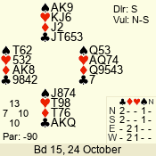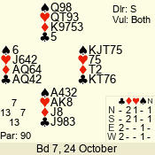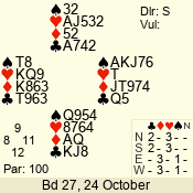 | Con | Dc | Res | Score | Ld | Pairs | Rd | Tbl | | 1 N | S | +2 | 150 | A | 09 - 07 | 3 | 9 |