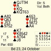 | Con | Dc | Res | Score | Ld | Pairs | Rd | Tbl | 4  | S | +1 | 650 | 4 | 02 - 06 | 6 | 2 |