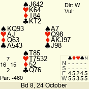 | Con | Dc | Res | Score | Ld | Pairs | Rd | Tbl | | 3 N | W | +2 | -460 | 4 | 05 - 07 | 8 | 5 |