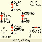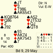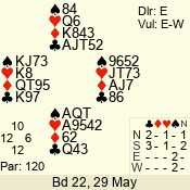 | 3 NT | E | +1 | -430 | 5 | 22 - 10 | 1 | 10 |