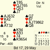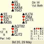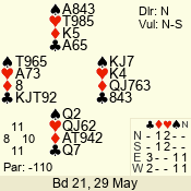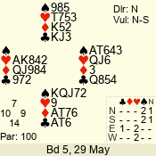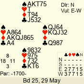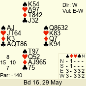 | 3 NT | W | +2 | -660 | 6 | 17 - 04 | 1 | 4 |