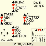 | 3 NT | E | +2 | -460 | 5 | 19 - 02 | 5 | 6 |