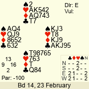 | Con | Dc | Res | Score | Ld | Pairs | Rd | Tbl | | 2 N | W | -2 | 200 | J | 04 - 05 | 7 | 4 |
