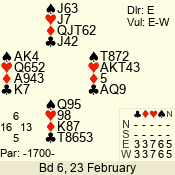 | Con | Dc | Res | Score | Ld | Pairs | Rd | Tbl | 4 x | E | -4 | 1100 | K | 06 - 06 | 1 | 6 |