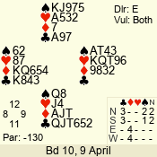 | Con | Dc | Res | Score | Ld | Pairs | Rd | Tbl | 6  | E | +1 | -1010 | 4 | 03 - 04 | 6 | 3 |