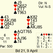 | Con | Dc | Res | Score | Ld | Pairs | Rd | Tbl | | 3 N | S | +2 | 460 | 4 | 04 - 06 | 5 | 4 |