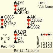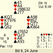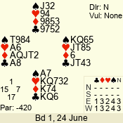 | 3 NT | W | +1 | -630 | 6 | 01 - 09 | 2 | 1 |