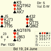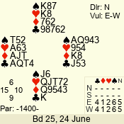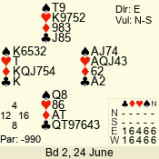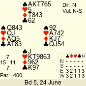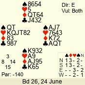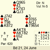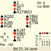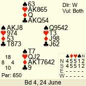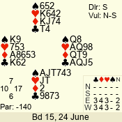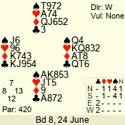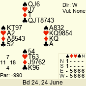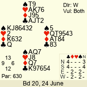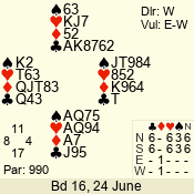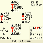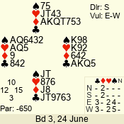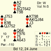 | 3 NT | W | +1 | -630 | 6 | 02 - 04 | 8 | 2 |