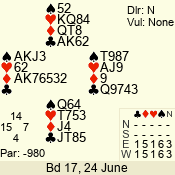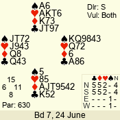 | 3 NT | W | +1 | -630 | 6 | 07 - 03 | 5 | 7 |