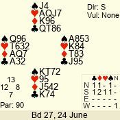 | Con | Dc | Res | Score | Ld | Pairs | Rd | Tbl | | 3 NT | N | +3 | 690 | 9 | 08 - 04 | 5 | 8 |