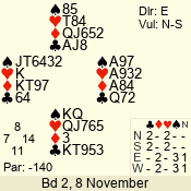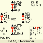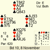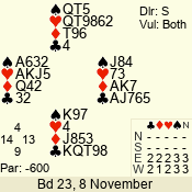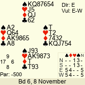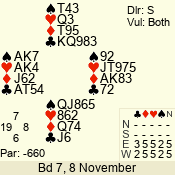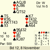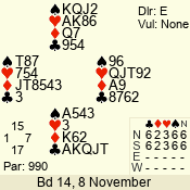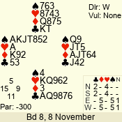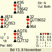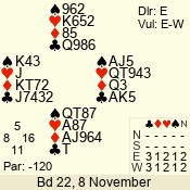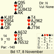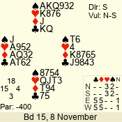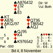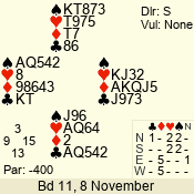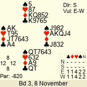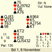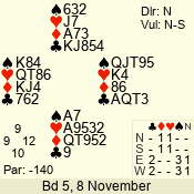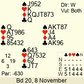 | 3 NT | W | +1 | -630 | K | 05 - 08 | 6 | 5 |