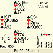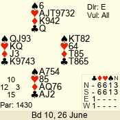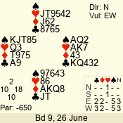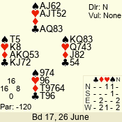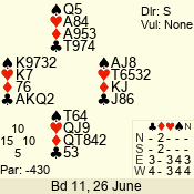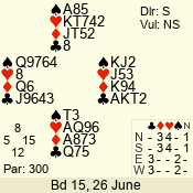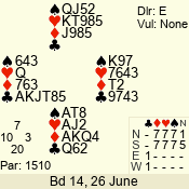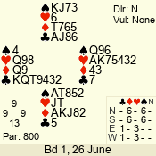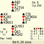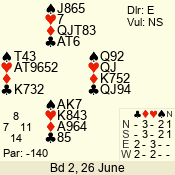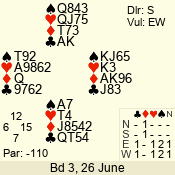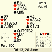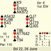 | 3 NT | E | +1 | -630 | 2 | 02 - 06 | 3 | 2 |