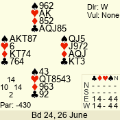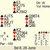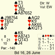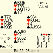 | 3 NT | W | +1 | -630 | 6 | 01 - 03 | 5 | 1 |