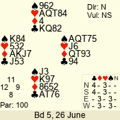 | 3 NT | S | +2 | 460 | A | 05 - 01 | 5 | 5 |