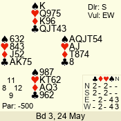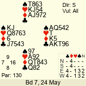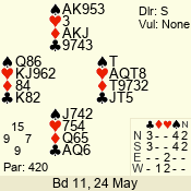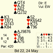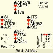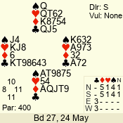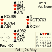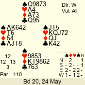 | Con | Dc | Res | Score | Ld | Pairs | Rd | Tbl | 4  | S | = | 420 | 3 | 01 - 03 | 6 | 1 |