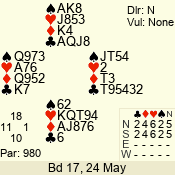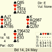 | 3 NT | E | +1 | -630 | 4 | 06 - 06 | 1 | 6 |
