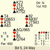 | Con | Dc | Res | Score | Ld | Pairs | Rd | Tbl | 4  | S | +1 | 650 | K | 04 - 05 | 7 | 4 |